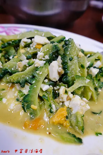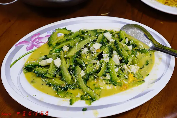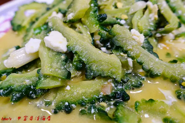 綠色苦瓜,加上鹹蛋的鹹香拌炒,吃來微苦而清爽。