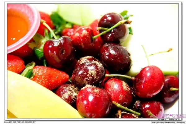 櫻桃,真的是新鮮櫻桃,上面是梅子粉