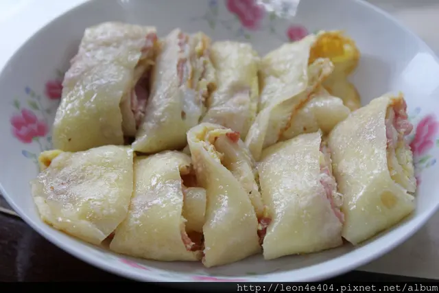 強尼說蛋餅的餅皮很嫩很喜歡,也不需要多淋醬汁提味就很好吃了