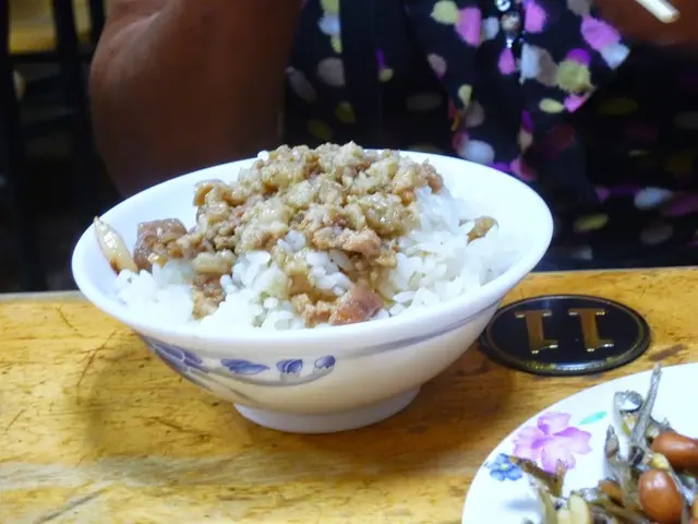 老媽幫阿婆點了小碗的肉燥飯,再配上一碗綜合扁食湯