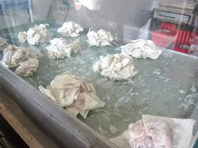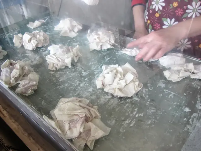 面對門口的左邊有個透明箱子,扁食就一坨一坨的裝在裡面