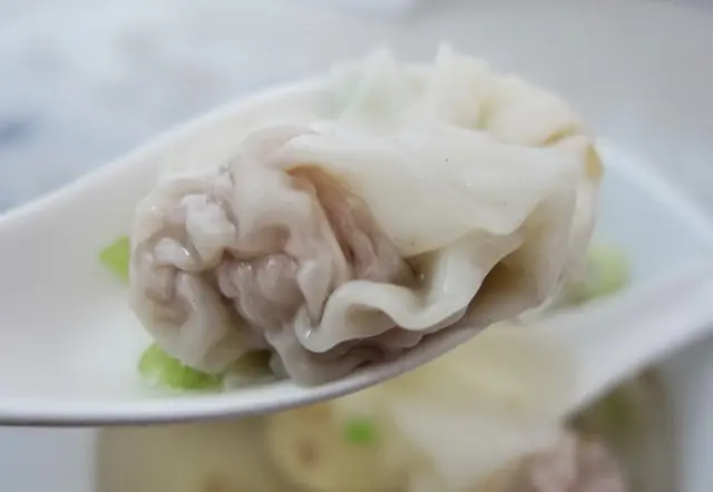 不過咬下一口就立刻改觀!外皮非常薄透,而且也煮得很熟透,沒有好像沒煮熟產生的麵粉味道,帶著一點粉色的肉餡有一種很明顯的鮮甜滋味,鬆軟得很好咬,就是會不禁讓人一顆接著一顆~