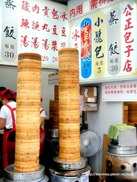 小籠包排得好整齊, 隱約可以看到包子下方公正包子店的字上有現任總統馬英九的簽名.