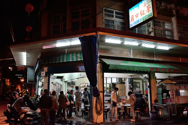 花蓮市廟口紅茶在地經營50年,隱身在古舊的老社區裡,招牌也看得出歷史的痕跡