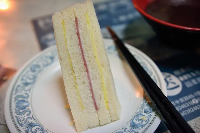 火腿三明治看起來也好可口,麵包Q軟,有美奶汁的香味,夾餡雙蛋和火腿