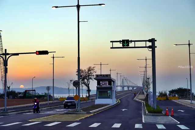 在湖下海堤望著建設中的金門大橋都不知道幾次了!盼阿盼阿,終於開通了,這趟來又專程來看已經開通了的金門大橋湖下海堤夕陽。只是這一趟只有三天兩夜,所以沒租車,只租摩托車,比較青春熱血一點。