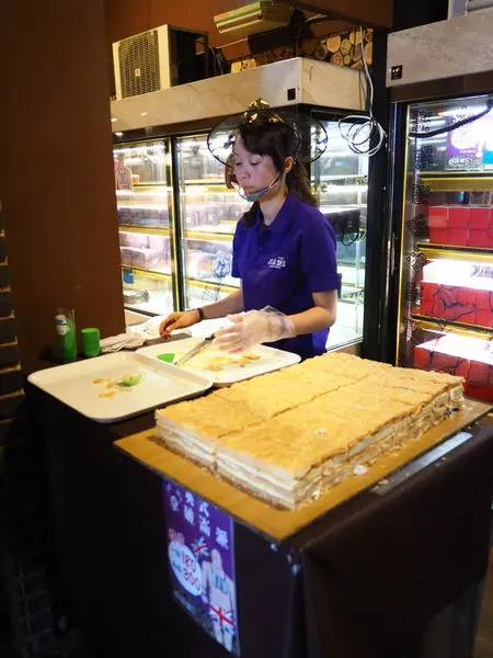 這個蛋糕看起來很好吃! 而且試吃給的很大塊呢!宜蘭的糕餅也是很有名的。