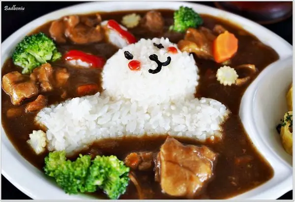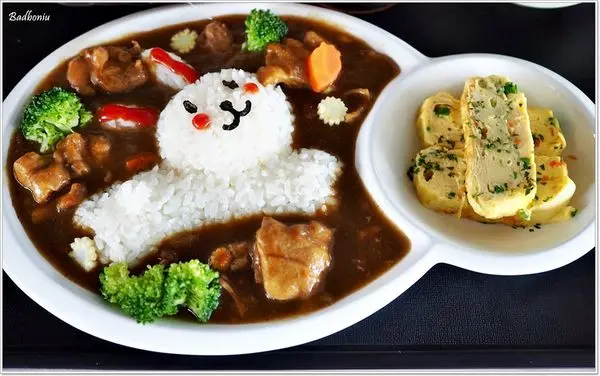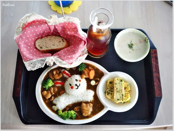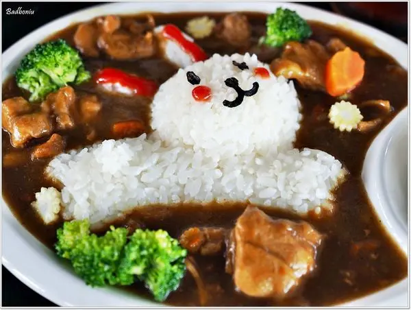 這兔子真的太可愛了,這樣教人怎麼忍心把牠吃下肚呢?咖哩甜甜的不辣,裡面還有滿滿的肉塊及蔬菜,連紅蘿蔔也是可愛的蘿蔔造型呢!(好像繞口令XD)