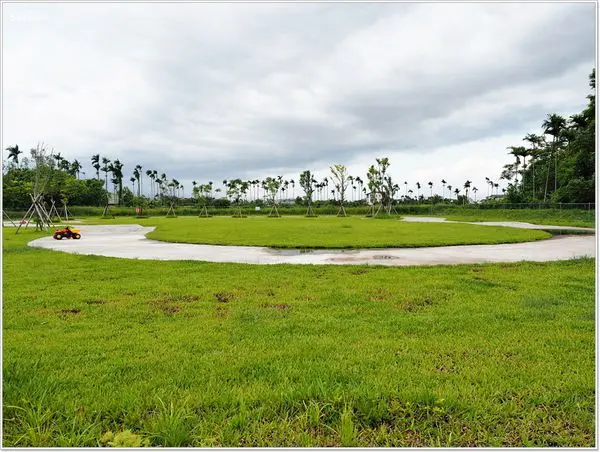 跑道設計許多S型的彎道,還有高低的坡道起伏,讓小朋友真的很有極速飆車的臨場感!一旁的草皮也是小朋友奔跑丟球的好場所,可以聞到泥土及草地氣息的自然幸福感,是身處都市水泥的都市小孩難得的體驗。