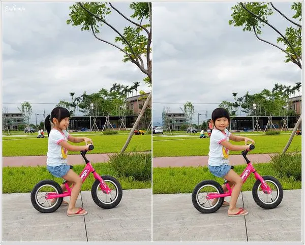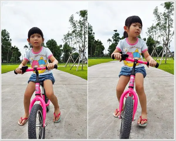 當然波妞媽的目標是這台滑步平衡車!因為波妞是第一次騎,所以還拿捏不到要領,表情很苦惱@@