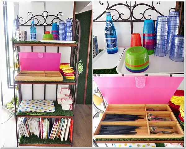 餐具及紙巾都在一旁可以自取,底下還有一些小繪本可以閱讀。