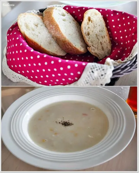 這是義大利麵附的濃湯及麵包,吃完後一整個好飽啊~~