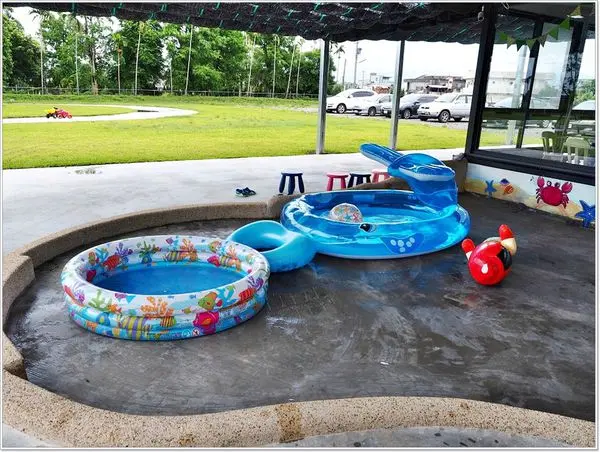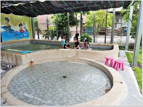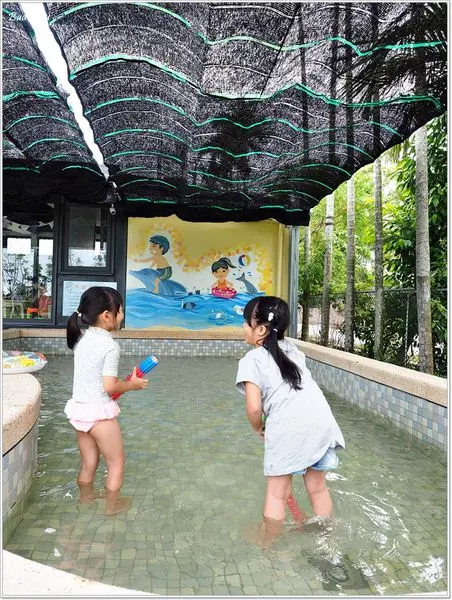戲水池的水是用天然的地下水,雖然水質有點濁卻很乾淨,而且泡在其中真的很透心涼唷!高度大概也只到小朋友的大腿,所以小朋友都可以玩得很開心。