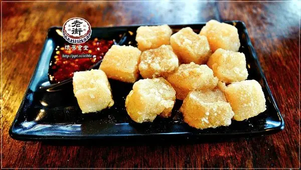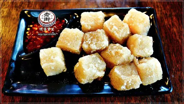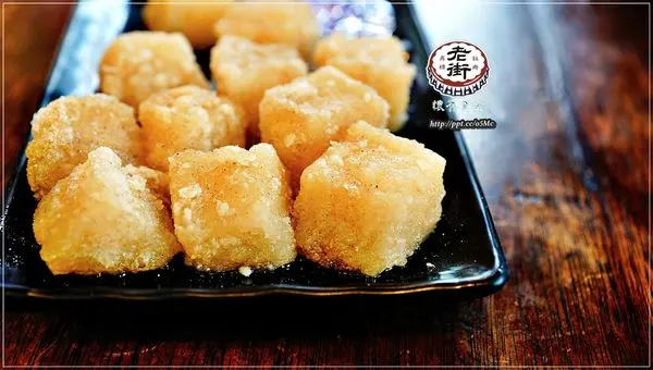 這盤老味糕渣,外觀四四方方很像炸豆腐
