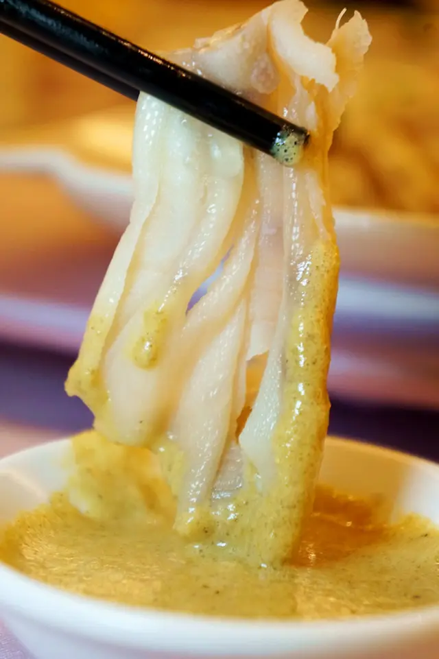 富含油脂,口感軟Q不肥膩,微微的甜度有些像德式豬腳,清雅香氣讓人回味無窮