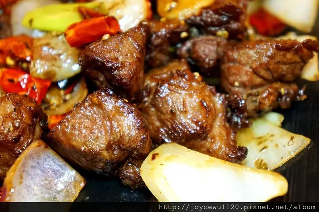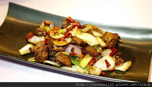 宮保名菜以骰子牛肉並置放在岩盤上來呈現,香、麻、辣都沒有到位,但整體來說還是一道容易讓人喜歡的牛肉料理
