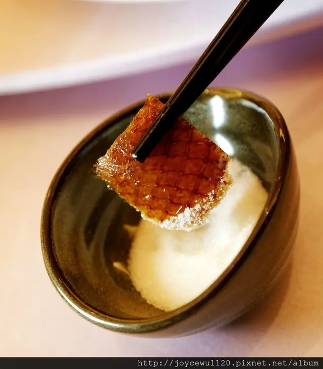 不只是鴨皮,單鴨肉片沾糖也同樣契合
