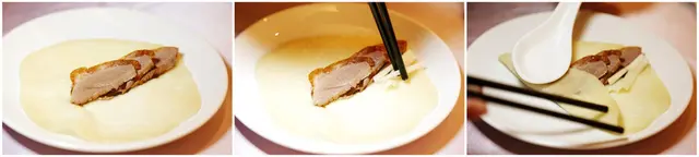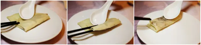 帶著北京腔的全聚德服務人員會在桌邊指導正確吃法