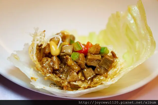 把鵲巢放入生菜中享用 (有點像生菜蝦鬆的感覺)