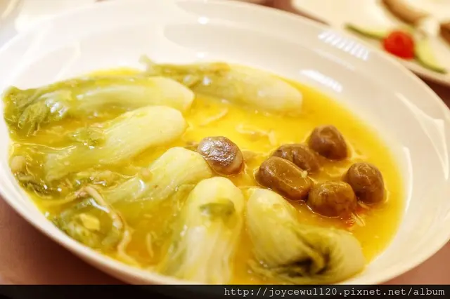 蟹黃湯汁充滿海鮮甜滋味,濃稠中不失清爽,味道極佳,與軟爛的白菜與栗子相入口真是好吃