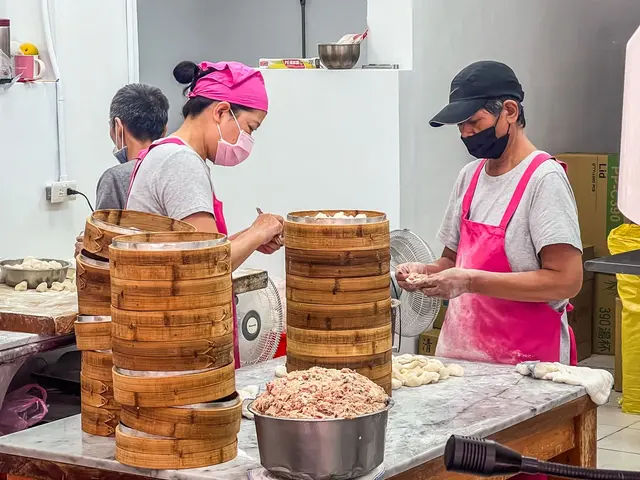 搬到新址後,廚房變得很乾淨,而且感覺也變很多個,光目測應該有超過十名員工在作業,真的蠻猛的,然後徵包子的爐子也沒停,經過還可以聞到蒸包子的味道