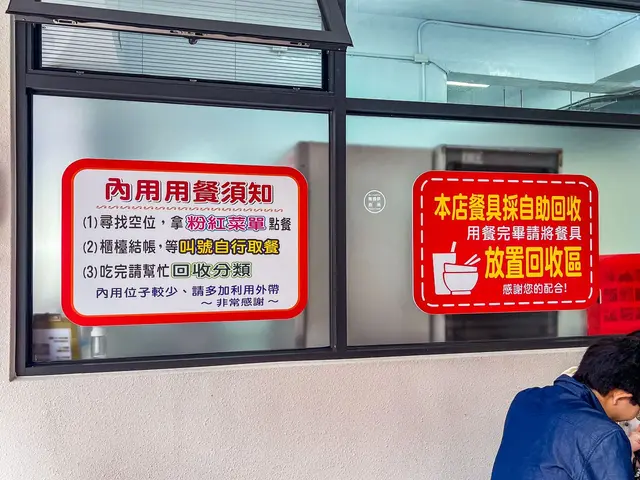 內用先找位置坐在去拿餐,座位很少,就目測看到這樣4~5張桌,很多人都是外帶直接站在旁邊吃,排隊點完餐等叫號取餐