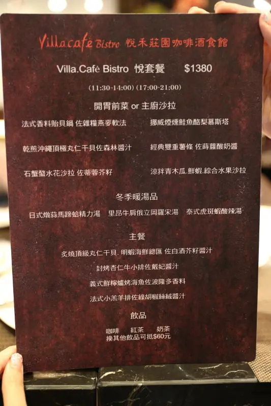 在跨年大餐和特殊節日,常常和朋友苦尋不到適合餐廳,經典的餐廳早已踏遍,平價為訴求的餐廳又不夠體面,悅禾莊園酒食館很貼心的滿足所有需求,白天是簡餐和豪華套餐兩種選擇,夜晚化身lounge bar有DJ駐唱。絨布沙發好柔軟好舒服,歐式復古氛圍讓人難以想像是在如此熱鬧的商圈裡!