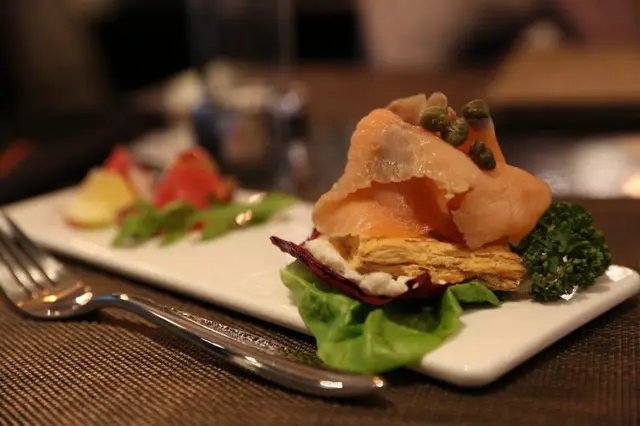 最上面覆蓋如花朵般的煙燻鮭魚,不嫌膩口感非常好