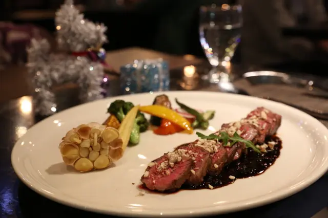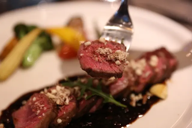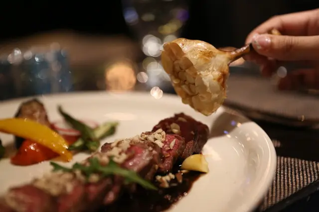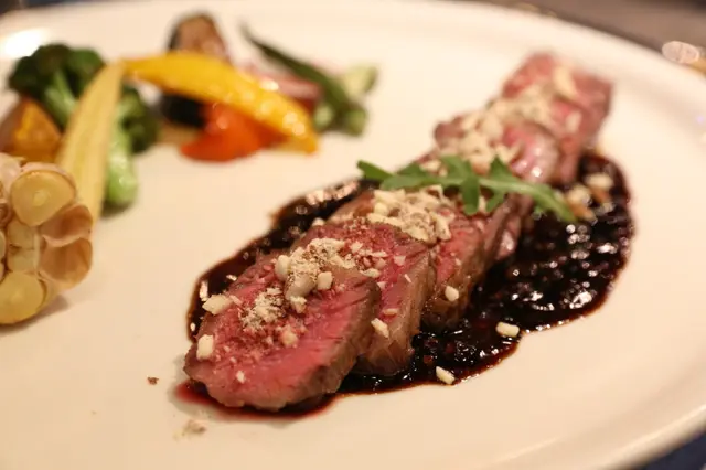 外緣烤至七八分熟,裡面五分熟剛好緊緊將肉汁鎖住,嚼起來充滿牛肉香
