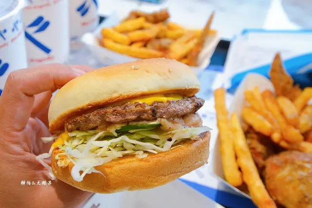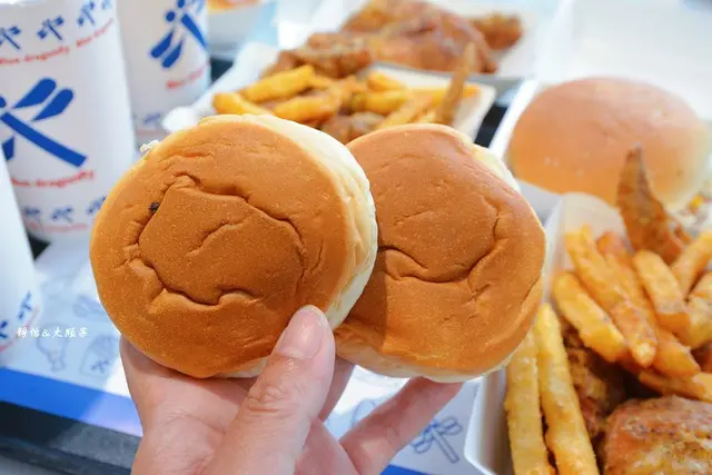 漢堡、雞翅、雞塊x3、薯條及飲料,漢堡有牛、豬、雞、魚四種口味可以選擇,我們是點牛肉,藍蜻蜓的漢堡也不錯吃,加入大量生菜吃起來爽口