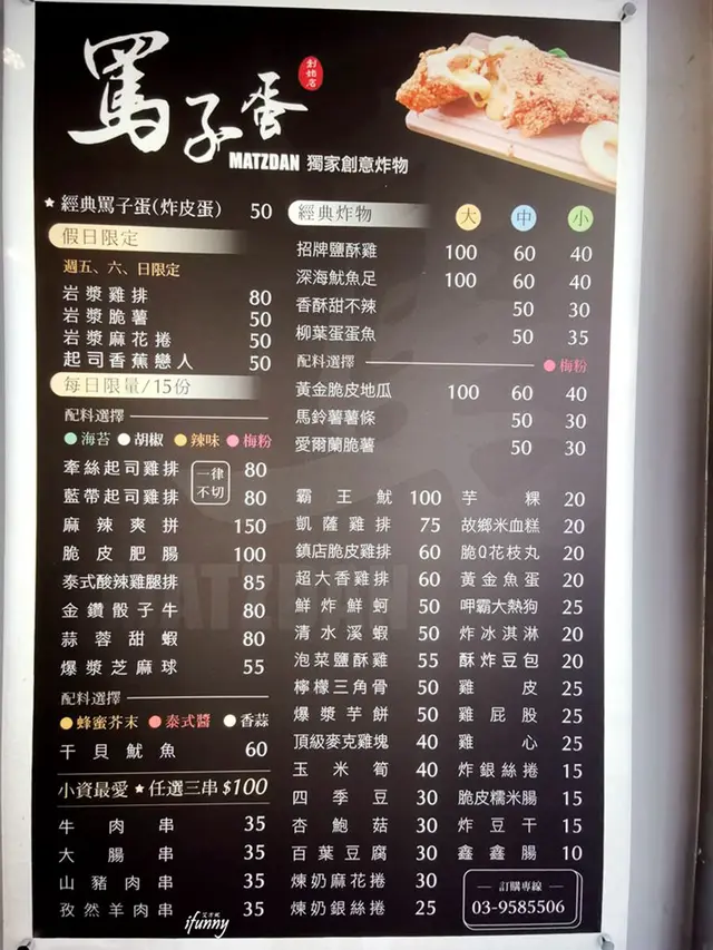精美的商品照,實在很令人食指大動!上次首訪罵子蛋創始總店時,是吃吃團一天吃七家中的第五家,所以只敢點招牌罵子蛋,這次特地餓著肚子來,終於可以大點特點了!