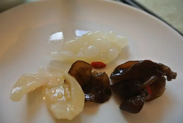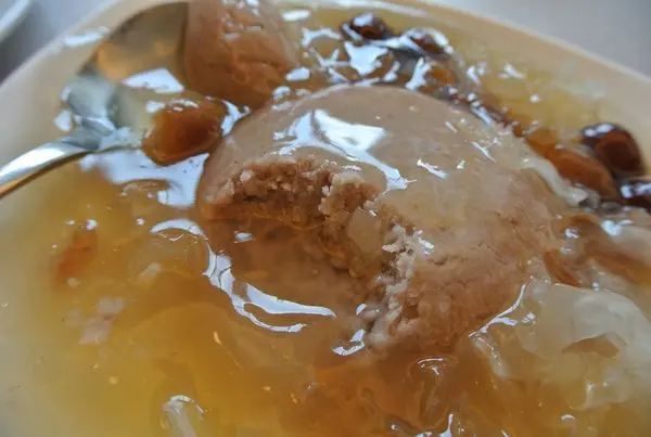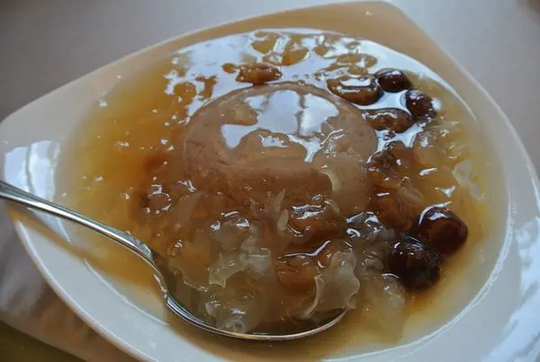 配料有紅棗、桂圓、白木耳,估計是冰糖調味