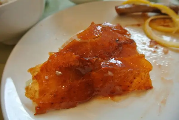 看起來單調但是富內涵,紅槽的酒味與甜味濃縮在乾魷魚內