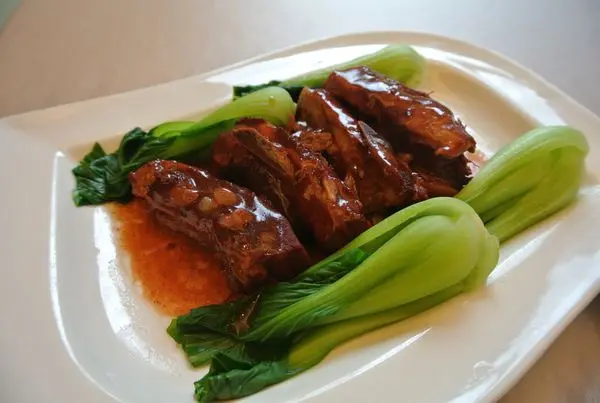 四隻排骨與青江菜,排骨烹調得相當軟爛~