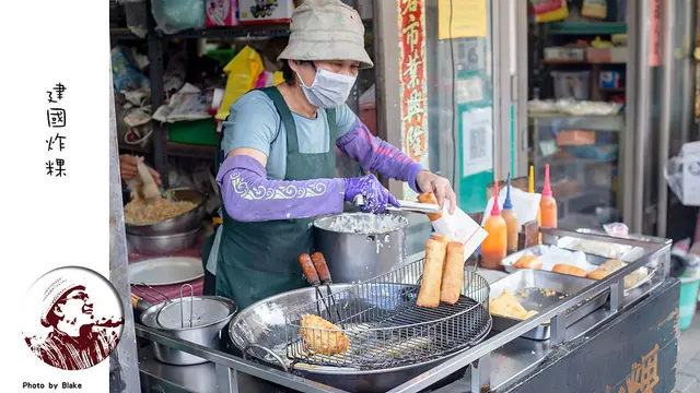 反正來澎湖一定要吃當地最具代表的小吃美食,那就是炸粿,像是赤崁炸粿與洪家炸粿都是外面會有兩隻狗蝦一起炸,大多都是走葷食路線,然後位於馬公市區的《建國炸粿》則是以素食為主的澎湖炸粿,《建國炸粿》一到下午不只是觀光客,連當地人都會來買,《建國炸粿》除了炸粿之外,還以像是炸春捲等等點心。