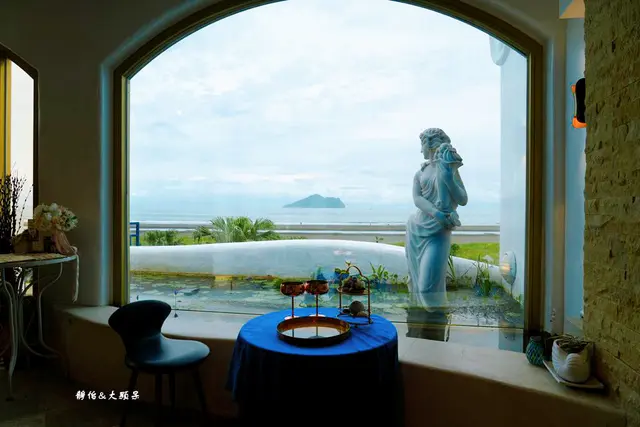 在咖啡廳內也能捕捉龜山島海景,店家也很貼心,特別規劃了拍照區,這桌是給大家拍照用的喔!