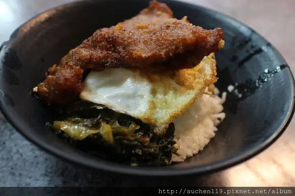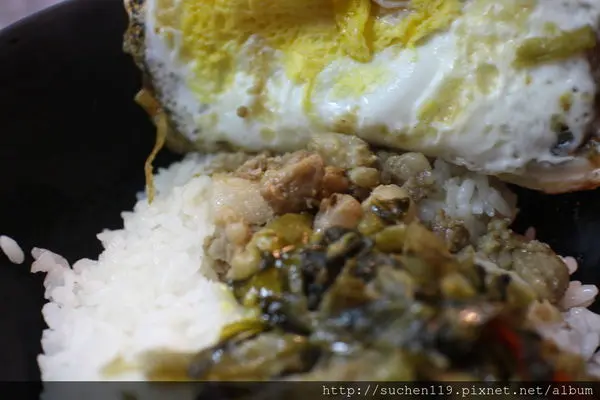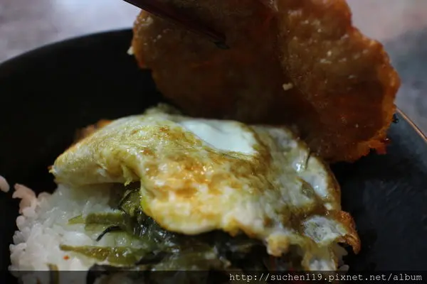 排骨底下是荷包蛋~酸菜和淋上滷肉滷汁的白飯