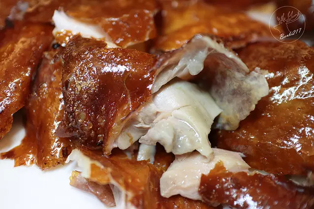 充滿蒜香的雞肉,因淋上麥芽糖與醋水再去烹調使得外皮酥脆的有如餅乾那樣,皮脆肉嫩且充滿肉汁,實在過癮!