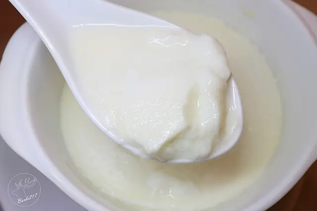 加入薑汁的甜點(或是豆花)一向非我的喜好,但因看到菜單上寫明為長榮鳳凰酒店(礁溪)特製,便忍不住點上了一碗。溫熱滑嫩綿密的燉奶(主要為蛋白、牛奶、糖),加上薑汁,不辛辣卻有薑香,味道香甜,喝起來實在暖胃,讓我這非愛好薑汁甜品的人也忍不住喝完見底。