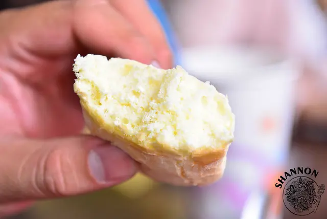 口感乾乾的味道很甜,點餐的時候我們說要一個紅色的結果被唸說:這是草莓,哀呦我們不知道麻~