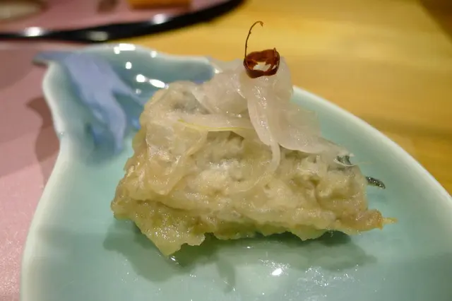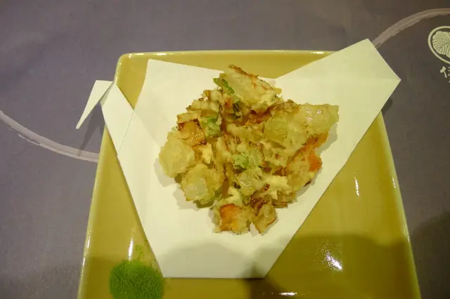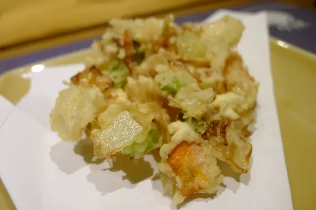 他的炸什錦是蔬菜 但是店家的功夫真的厲害 蔬菜的鮮甜完全都在其中 佐以抹茶鹽 還帶有一絲茶香 解膩又增味