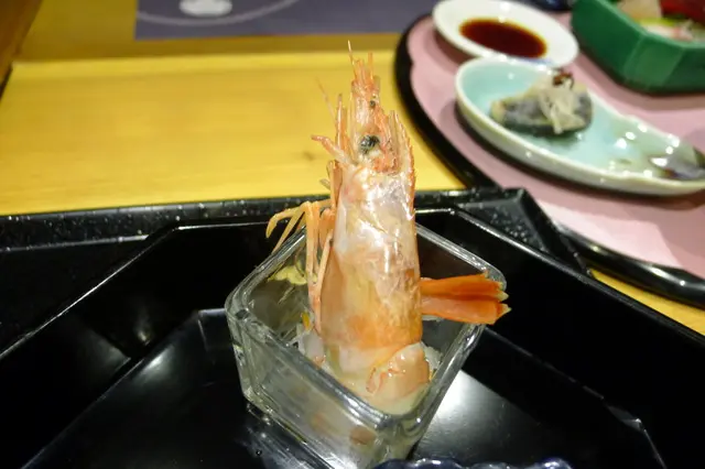 這是會席的前菜 差異只在擺盤和這一隻蝦