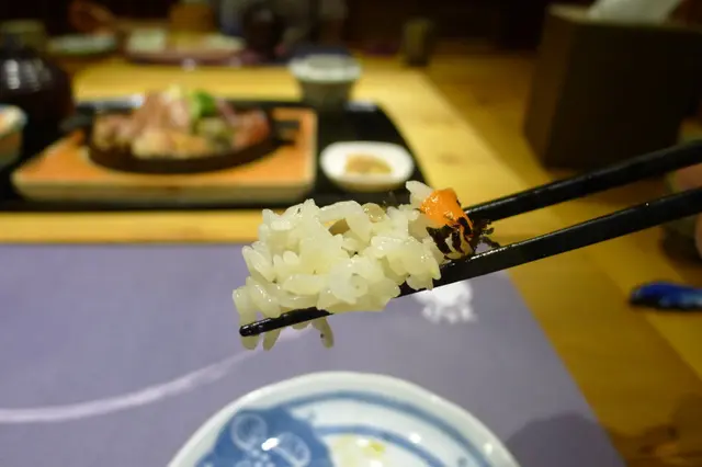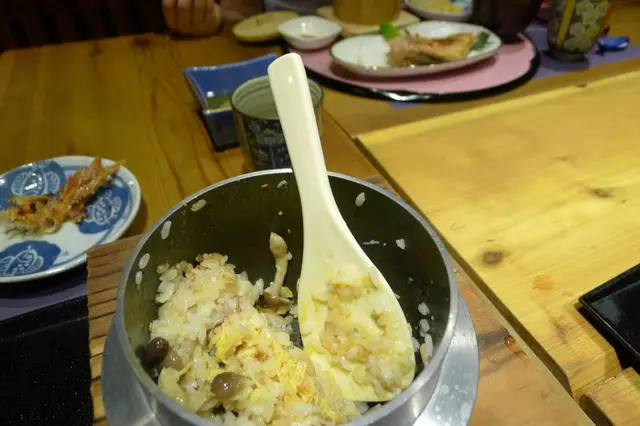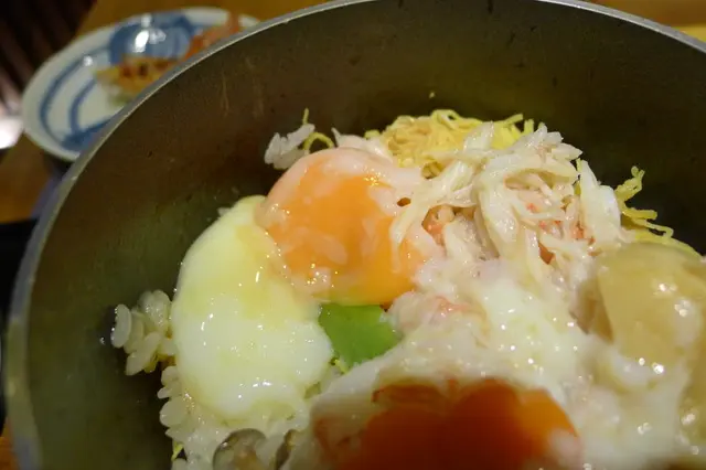 松葉蟹肉釜飯御膳 這有3吃 一吃單純吃釜飯 二吃加溫泉蛋 三吃做成茶泡飯