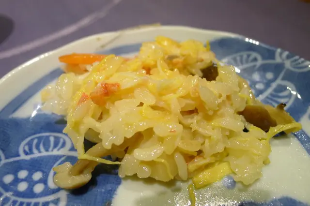 這個日式涼伴菜 鹹的非常可怕.... 問服務生 他是說日本師傅做的 OK 其實我們都知道 日本料理雖然真的很貼近我們台灣人的生活 但是說到底他還是異國料理 有不合口味的東西絕對會有 原汁原味很棒 我們也想吃正日式料理 但是這味道真的重過頭了....日式的菜色裡 我相信應該有比較符合台灣人的口味吧? 如果能換個比較貼近我們的口味 我會覺得更好 真的超級鹹啊 有嚇到