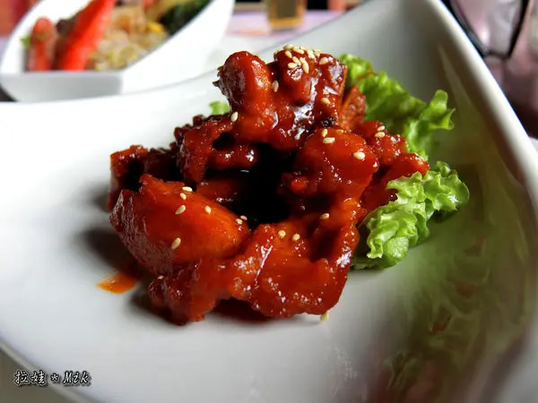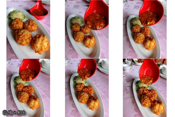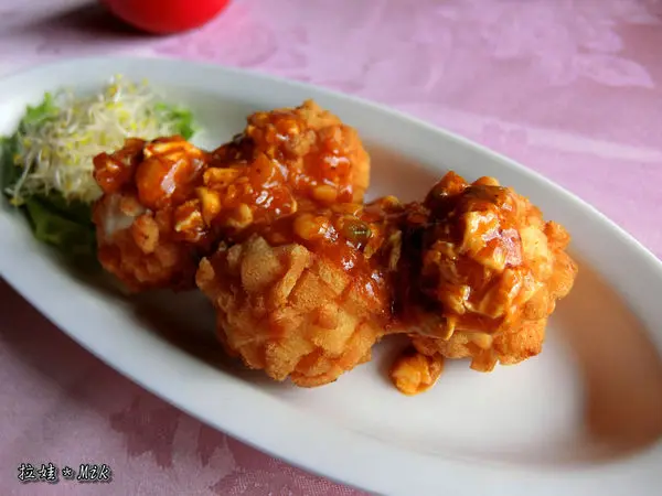感覺是炸過後再裹上糖醋醬,然後放上白芝麻點綴