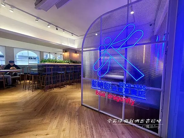 招牌上除了藍蜻蜓字樣外還畫著一隻小藍蜻蜓