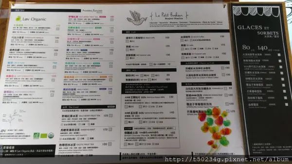 menu上除了茶之外還有咖啡跟冰淇淋可以點餐,點餐是採自助式的!除了飲料跟冰淇淋外的甜食鹹派就要自己到櫃台選喔!