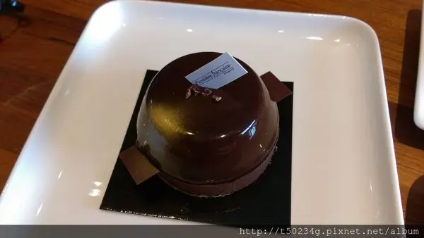 今天的第一名甜點,上層焦糖慕斯搭配香草餡心與72%生巧克力,