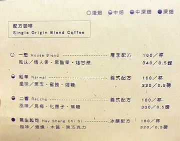 推薦菜色:花香拿鐵、地中海四種紅色水果奶茶、焦糖烤布丁、無花果戚風蛋糕平均消費:230/人等待時間:10分鐘店內氣氛:★★★★☆美味程度:★★★★☆再訪率:★★★★☆ 說起新竹推薦的咖啡廳,一想一響絕對是在我心中絕對是前三名一想一響從2018年開幕至今已四年多,期間到訪多次,從來沒有一次失望過 一想一響位於民生路巷內,於巨城商圈內,從巨城走路約10分鐘離老瀋陽酸菜白肉鍋、小墊子 走路約5分鐘路程,開車的話可以在三民路上找停車格~ 一想一響 是一間兩層樓的店面,佔地頗大,大大的招牌在建築物側邊建築物斑駁的外牆加上鏽蝕的鐵皮屋檐,若不知道這是間咖啡廳的話 可能會覺得是間廢墟正面是完全截然不同的感覺,老宅翻新 非常有氣氛 店內販售的品項很多,光咖啡就有手沖、義式、特調手沖的豆子很多種,特調除了一般常見的品項外,還有咖啡&酒的搭配,非常特別不喝咖啡的人,茶的選項也不少,另外還有奶茶跟精釀啤酒! 餐點選擇雖然沒有像飲品這麼豐富,不過鹹甜食都有~*每人低消飲品一杯,不收服務費*不限時,部分座位有插座,有提供wifi店內還有販售咖啡豆、耳掛包跟精釀啤酒唷! 地中海四種紅色水果奶茶($180)、花香拿鐵($150)、漂浮冰咖啡($180)、焦糖烤布丁($100)、無花果戚風蛋糕($180)花香拿鐵聞起來有淡淡的花香味,咖啡與奶的比例剛好,不會太奶 很好喝!水果奶茶也很好喝,水果香氣十足,而且是很天然的水果味,比起一般奶茶格外清爽 漂浮冰咖啡($180)漂浮冰咖啡的冰淇淋上加了一個小滴管 ,很可愛滴管裡面裝的是糖漿,冰淇淋本身就有甜度,建議不用再擠糖漿~ 焦糖烤布丁($100)布丁個頭不小,口感非常綿密、入口即化,是我愛的布丁!!焦糖蠻多蠻甜的,酌量搭配食用比較剛好~ 無花果戚風蛋糕($180)當天的私房甜點是無花果戚風蛋糕,巧克力醬只有上面薄薄一層,是款甜度蠻低的蛋糕戚風蛋糕體很蓬鬆,搭配輕柔的鮮奶油,口感跟味道都恰到好處 好吃! 最後是環境照~ 店內座位分佈於一、二樓,除了室內外 也有幾桌室外座位,像最近涼涼的秋天坐在室外其實也蠻舒服的~雖然兩層樓的座位數量不少,但假日還是一位難求,而且不限時,所以也無法確定候位時間 整體來說一想一響的飲品、甜點、環境及價位 我都很滿意!而且餐點品質很穩定,目前還沒踩雷過不論是姐妹聚會還是一個人看書、用電腦都很適合~ …查看更多