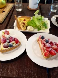 新竹超有名的手工水果塔甜點店 一百種味道俗話說甜點是另一個胃,大夥在品嚐完創食堂無菜單料理後開著車到新竹市區巷弄裡挖掘好吃甜點咖啡一百種味道是咬哥推薦的美食,相信能夠征服男生胃口的甜食比較厲害石坊街是很邪惡的一個小路,沿途的甜點店都讓人想進去走走小小的招牌,一不小心很容易錯過門口有一堆綠色盆景、突出的咖啡色屋簷搭配古銅色的落地玻璃大門完全是babe喜歡的鄉村風格平日午後店內塞滿了人潮,可以外帶或是坐在外頭吹吹涼風一個L形的開放式空間,除了熱茶可能比較容易冷掉外,外頭在傍晚的時候非常有氣氛大約三坪大的室內空間、吧台裡頭有兩個可愛的女店員點餐先結帳,menu只有基本款飲料,新品建議看黑板甜點玻璃櫃裡頭的水果塔光看就食指大動平均每一片140左右~水果塞滿滿的樣子讓人為之瘋狂外帶盒裝的樣子如圖示,拿八片最美可以加購保冷袋,到外縣也沒有問題店內有五桌,小桌只能坐兩位,大桌四位但是大家還是感情很好的五個人黏在一起點飲料跟甜點是沒有折扣的不加收服務費、水杯自取有機也沒花茶可以回沖(茶壺超有古藝)部分桌子旁有插座,店內有很多梅花鹿的擺飾(不能帶走)工業風x巴洛克風的燈飾,整間店充滿著歐洲耶誕氣息我跟安妮有志一同的點了生乳酪莓果塔(藍莓與草莓)地方媽媽的綠葡萄乳酪塔、咬哥跟尼豪合吃一份香蕉巧克力布朗尼塔拿鐵咖啡使用的義式咖啡機E61,喝起來與看起來一樣討喜如果怕甜的朋友有機野莓茶微酸甜很解膩回沖後顏色比較淡,第一泡比較好喝綠葡萄本身很甜、無籽吃來又很方便底下的派皮感受不到太多的負擔,僅是增添口感將整體結合在一起的卡士達,有股奶香的濃郁相較之下babe本生就愛草莓,這個季節的草莓也是特別甜而多汁搭配上生乳酪的微酸與柔軟,搭配派底一起品嚐沒有幾口就吃得一乾二凈苦甜比例很完美的布朗尼、搭配新鮮的香蕉除了派餅外,加分的杏仁角讓每一口都很驚豔難怪男生會喜歡,babe自己也覺得這是相對有深度的成熟水果塔不知道有沒有時間限制,大概五點太陽下山後店內就有位子了內用平均一個人300元,外帶飲品一率100元喔喜歡吃水果塔的朋友或是到新竹火車站想找一間有質感的咖啡甜點店一百種味道是很不錯的選擇…查看更多